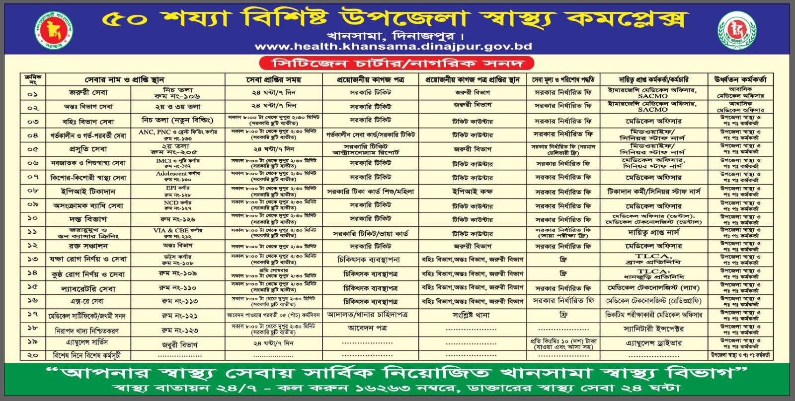 উপজেলা স্বাস্থ্য কমপ্লেক্স -এর সিটিজেন চার্টার